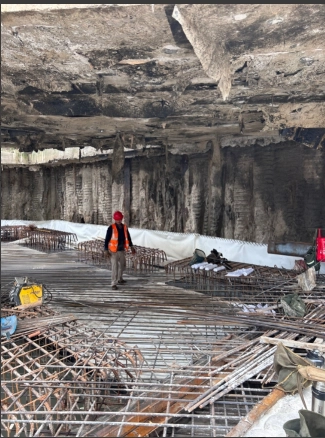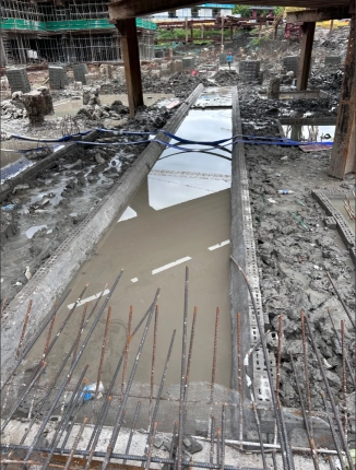 支撑梁垫层下油毛毡现场照片