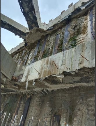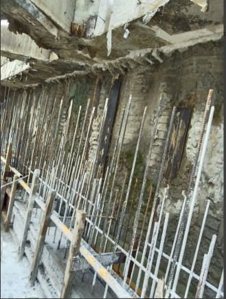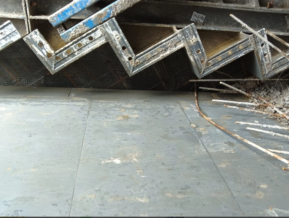 梯段与剪力墙相接处的钢丝网--拦截混凝土