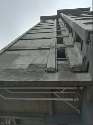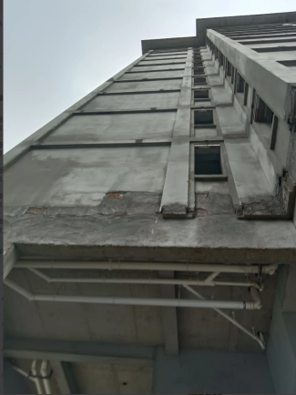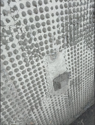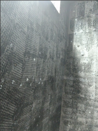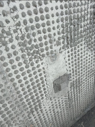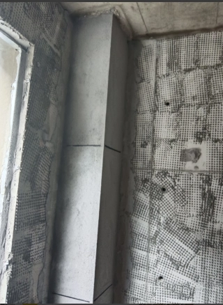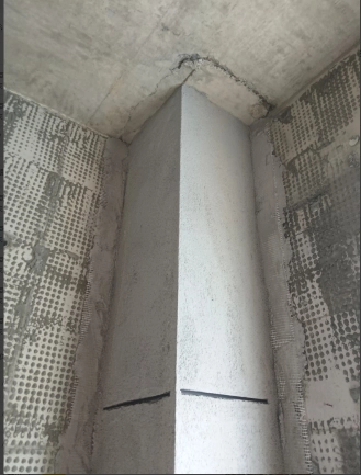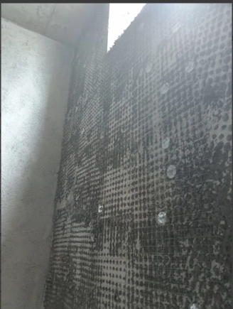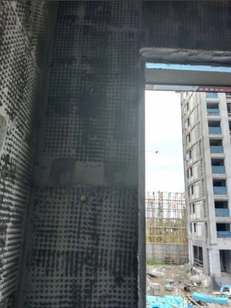 在剪力墙的墙面定耐碱网格布的照片-楼梯间