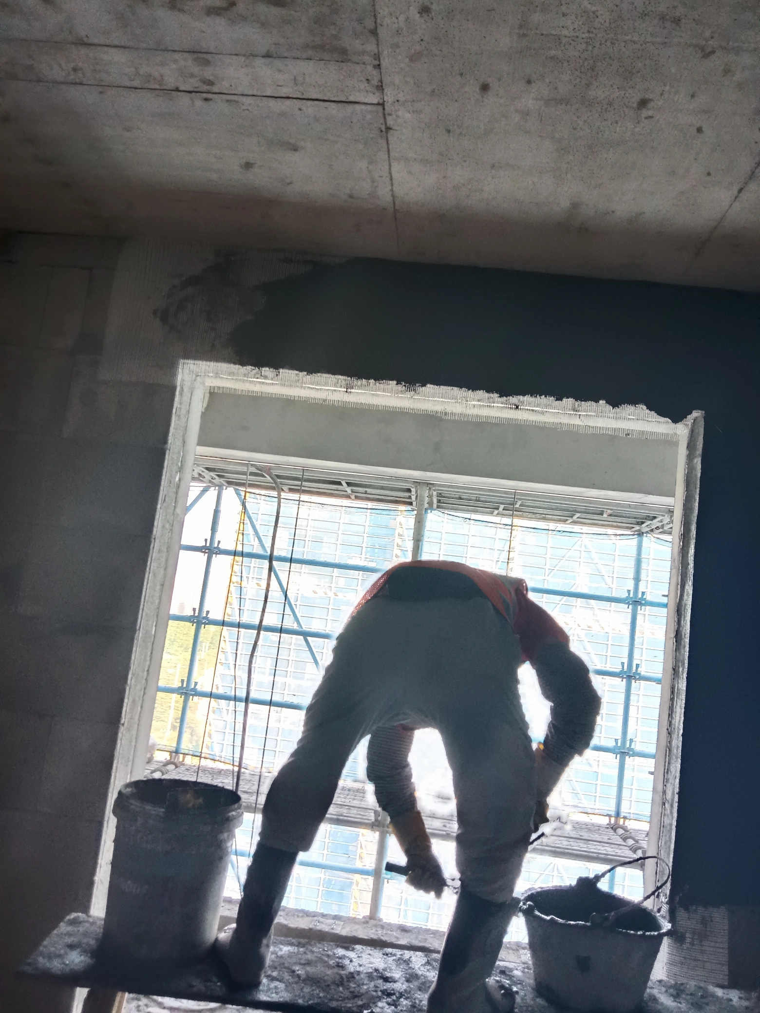 塔楼室内-悬空梁的-抹灰