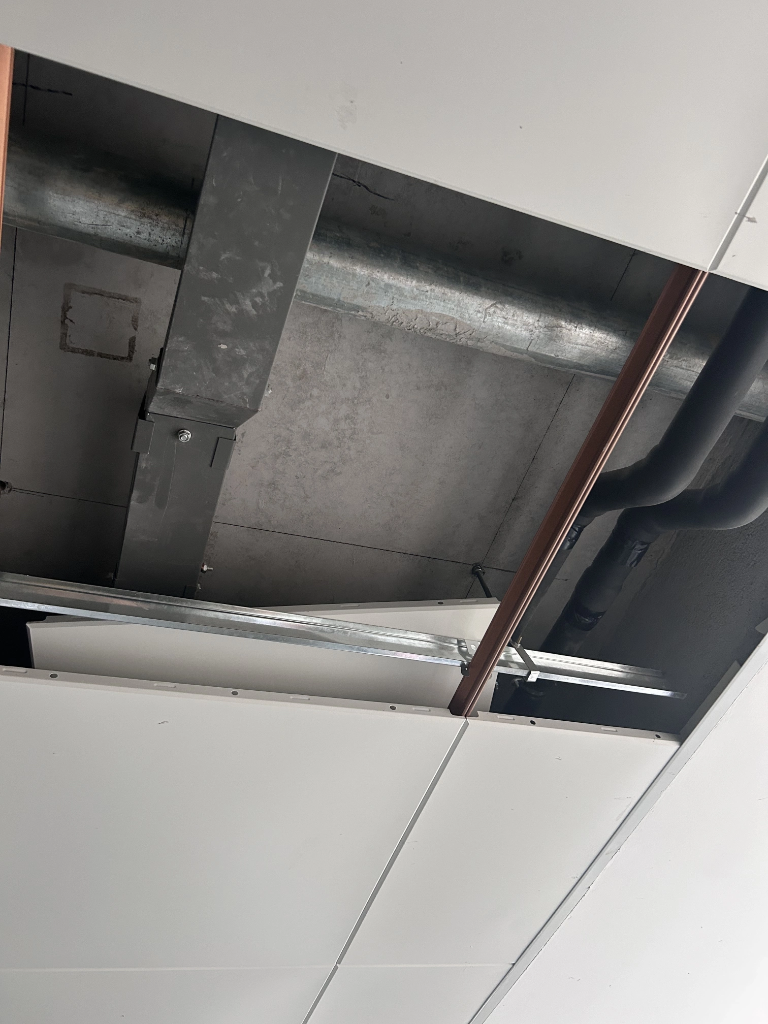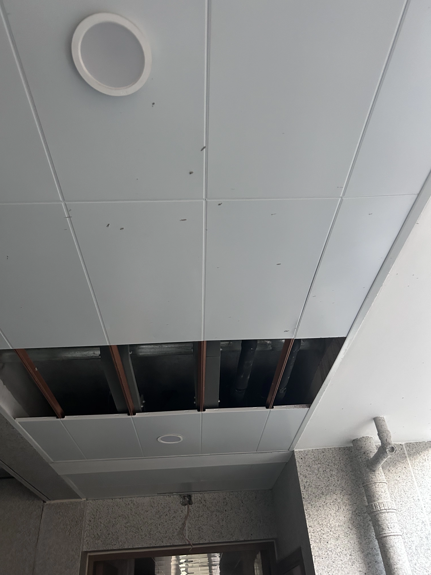 走廊铝扣板吊顶,吊顶以上板下为结构面