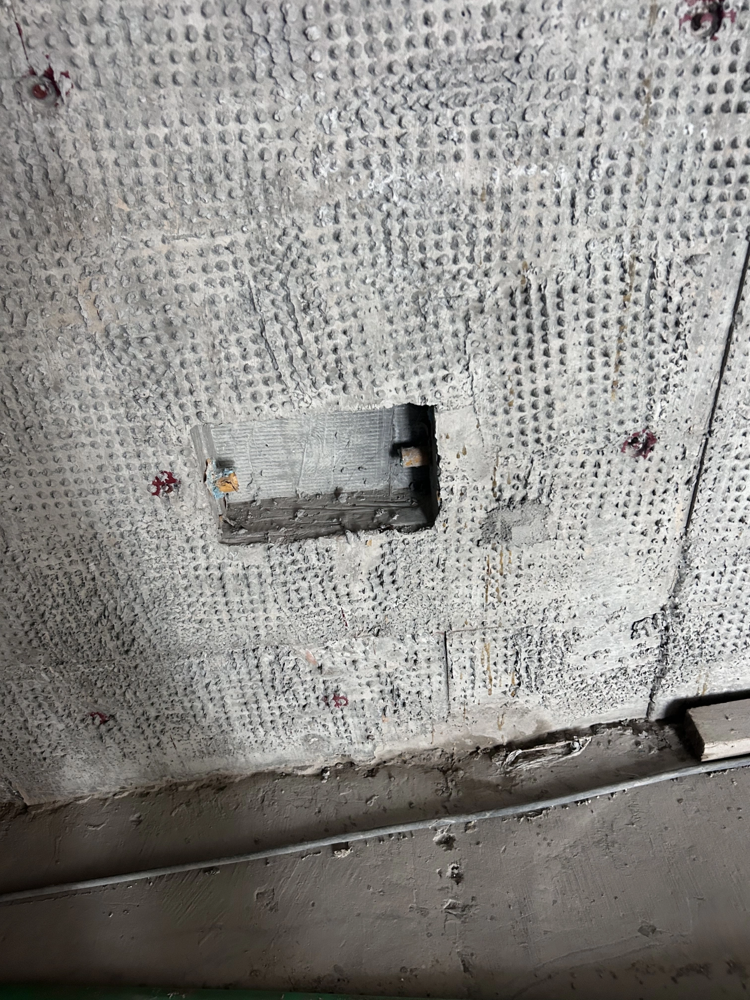 电梯厅配电箱处墙背面未施工水包水