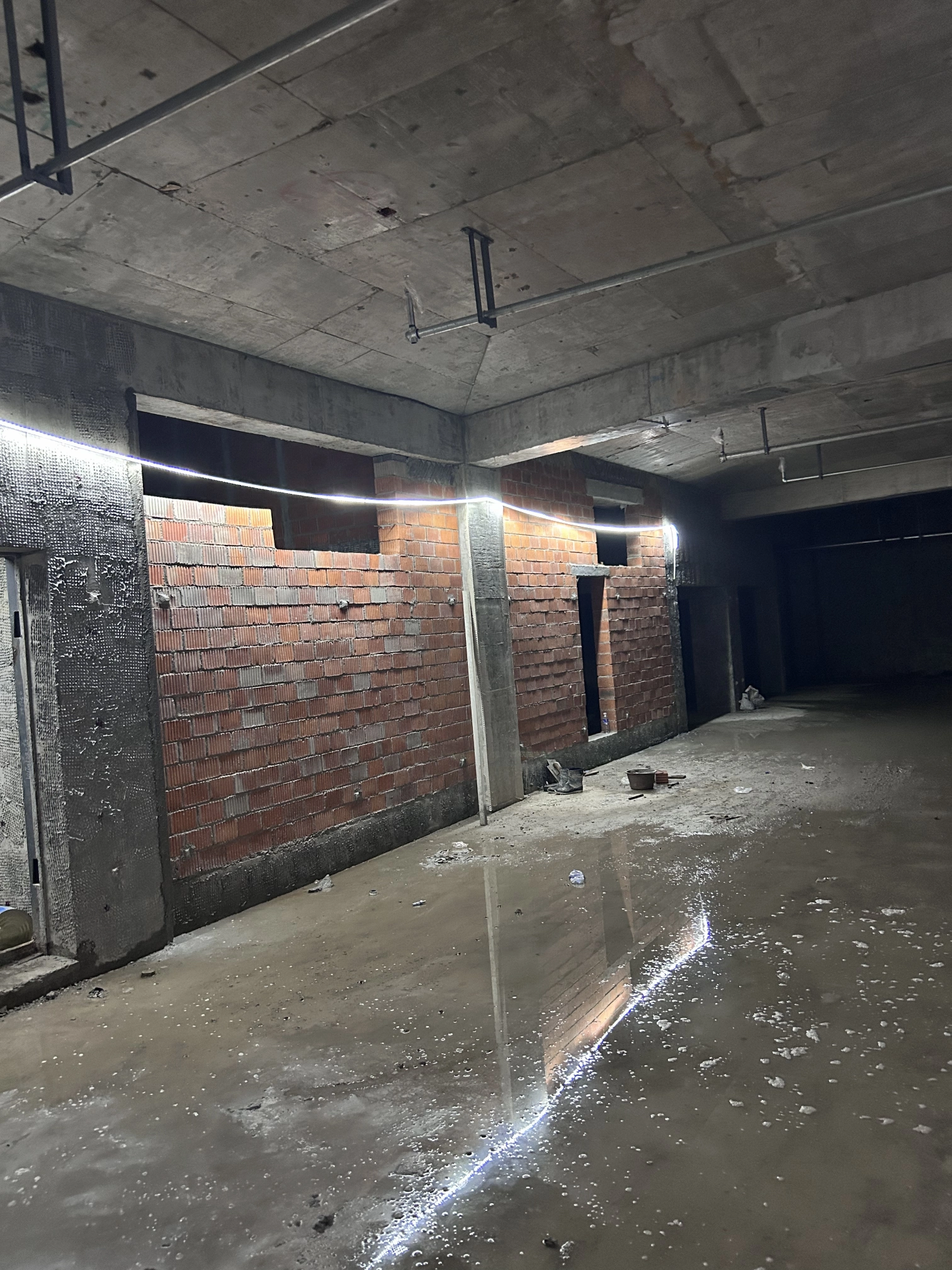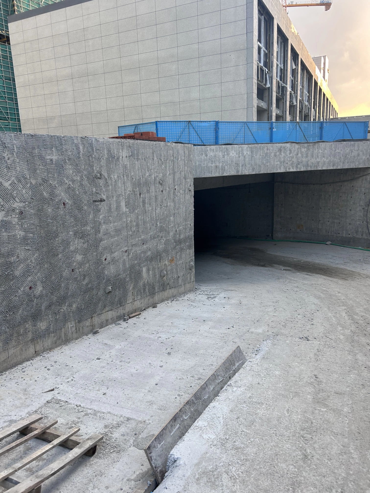 地下室汽车坡道抹灰及墙上壁灯预埋