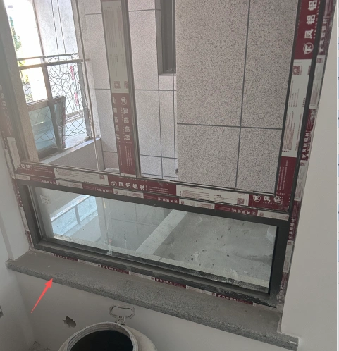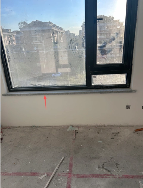 客厅石材窗台板且现场实际磨斜边处理了