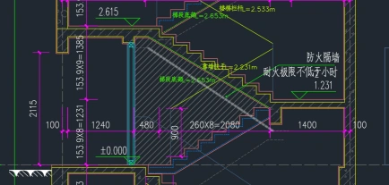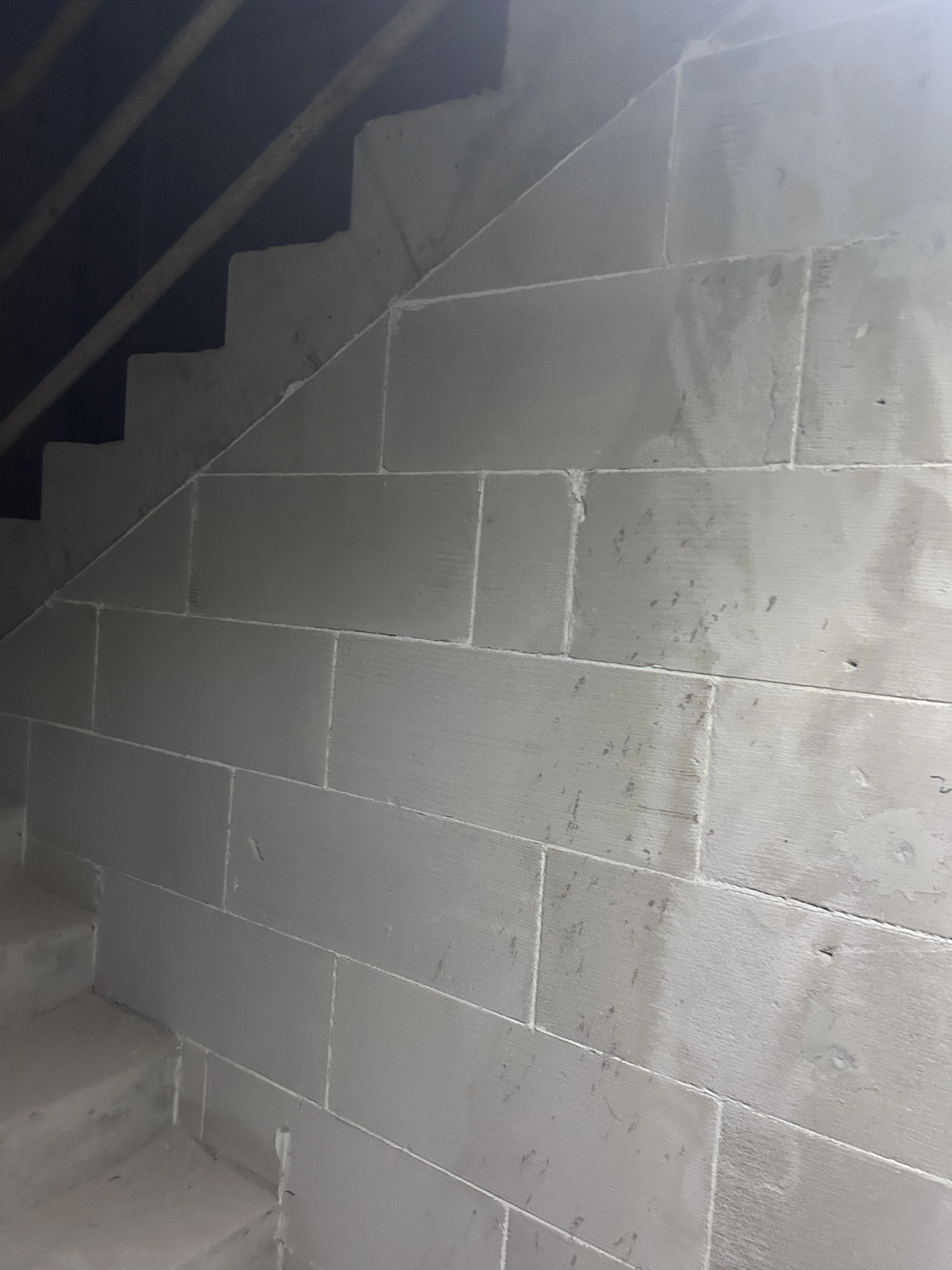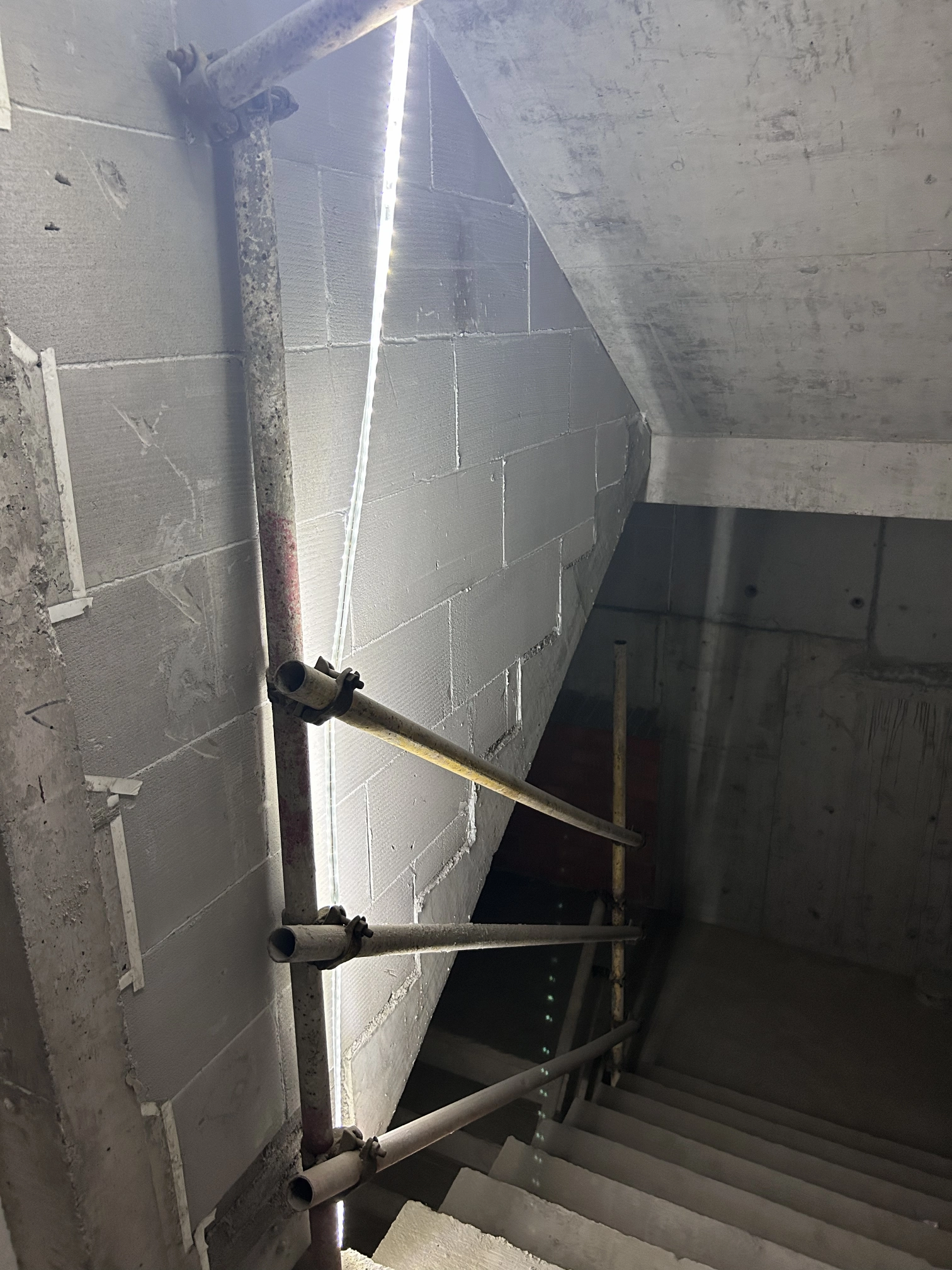 楼梯间首层防火隔墙现场照片,注意靠墙扶手