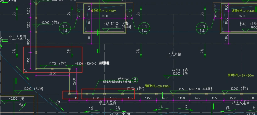 屋面栏杆下柱墩现场照片,注意区分上人和不上人屋面的界限,主要是刚性层