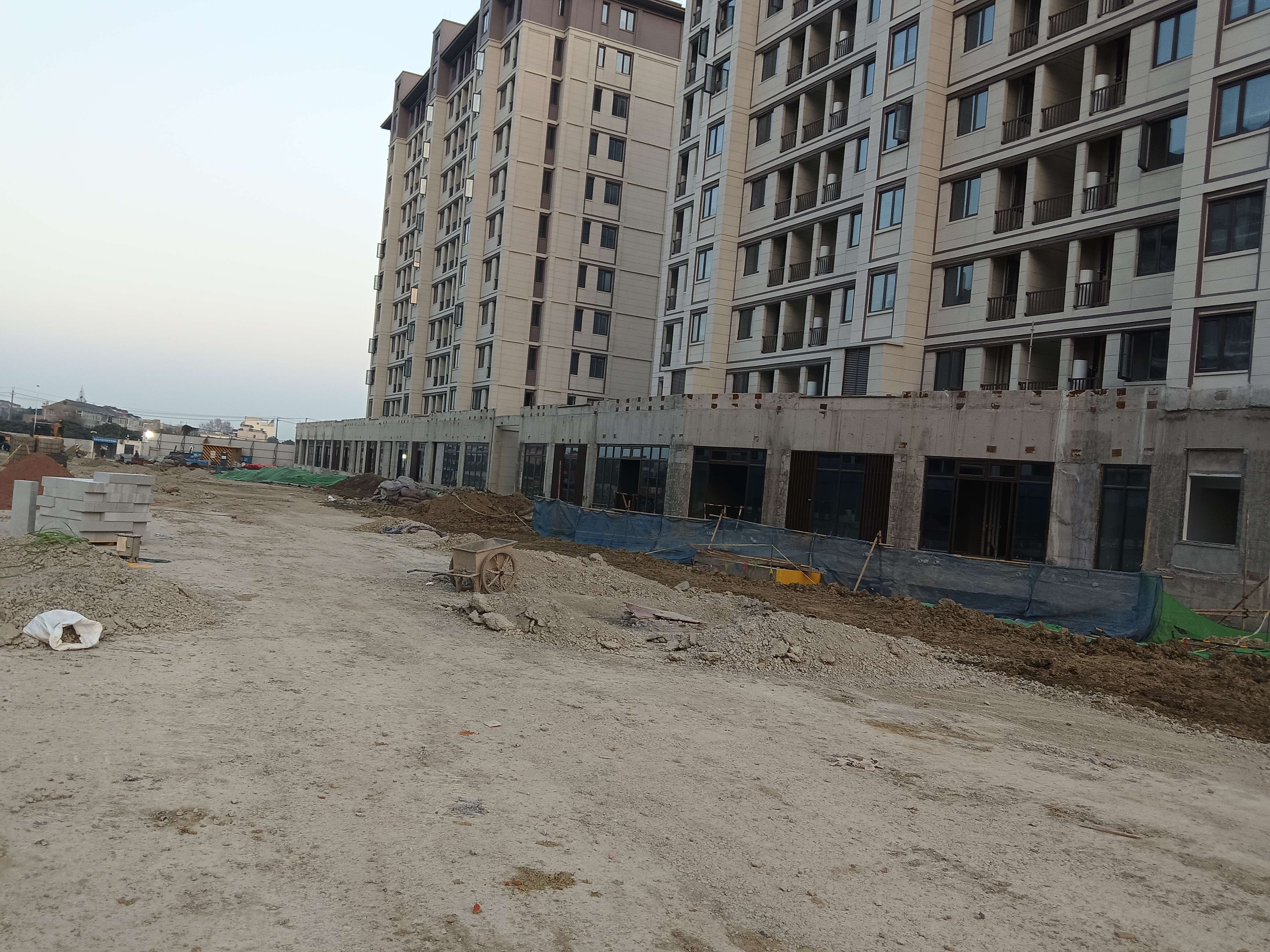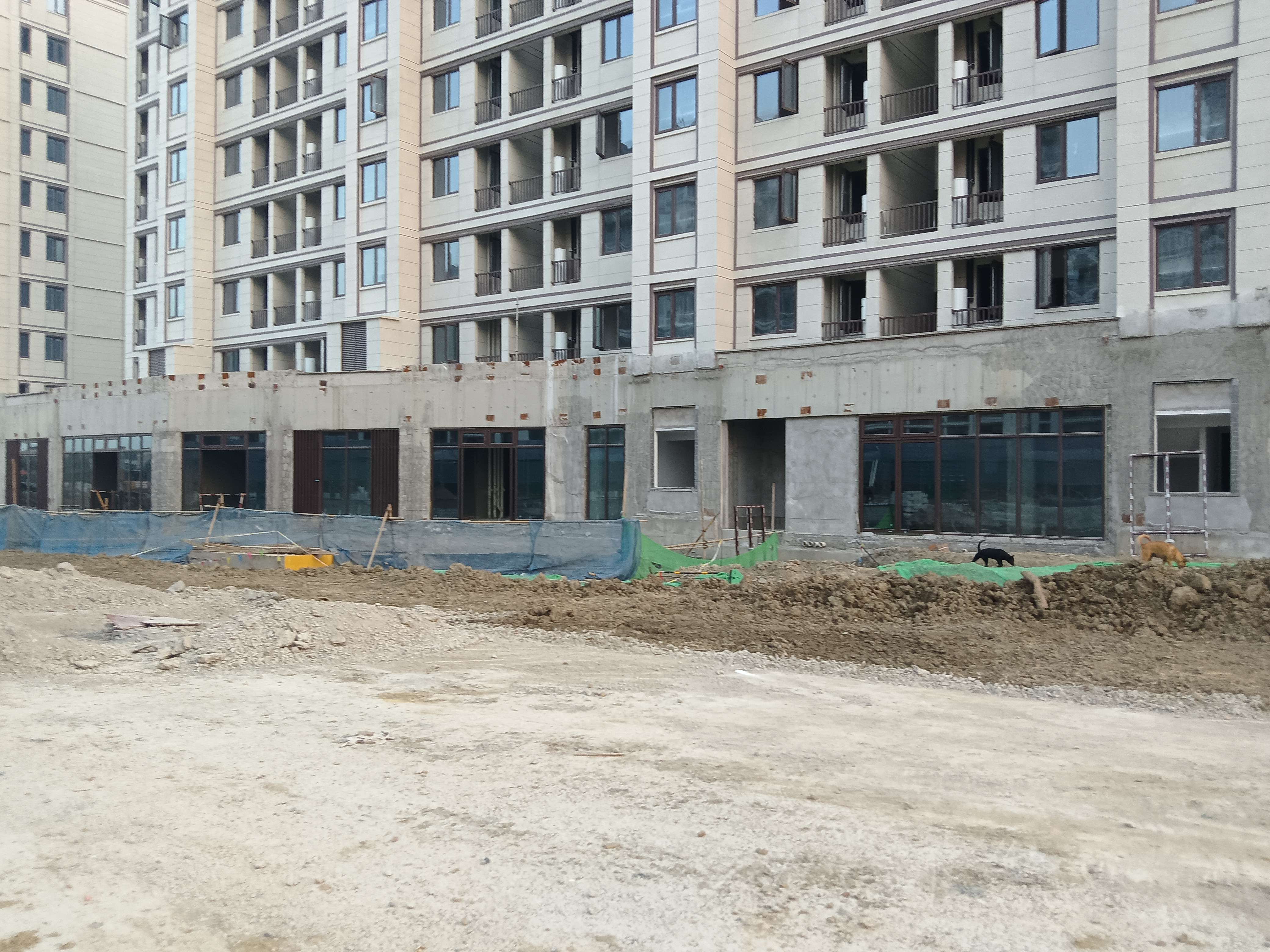 首层商铺大量的砼墙面没有抹灰