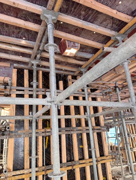 梁木模板的传力:模板至方木至钢管至顶托至盘扣