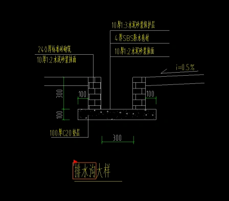 基坑外排水沟,一面是卷材,一面看着是涂抹防水,图纸做法为卷材防水