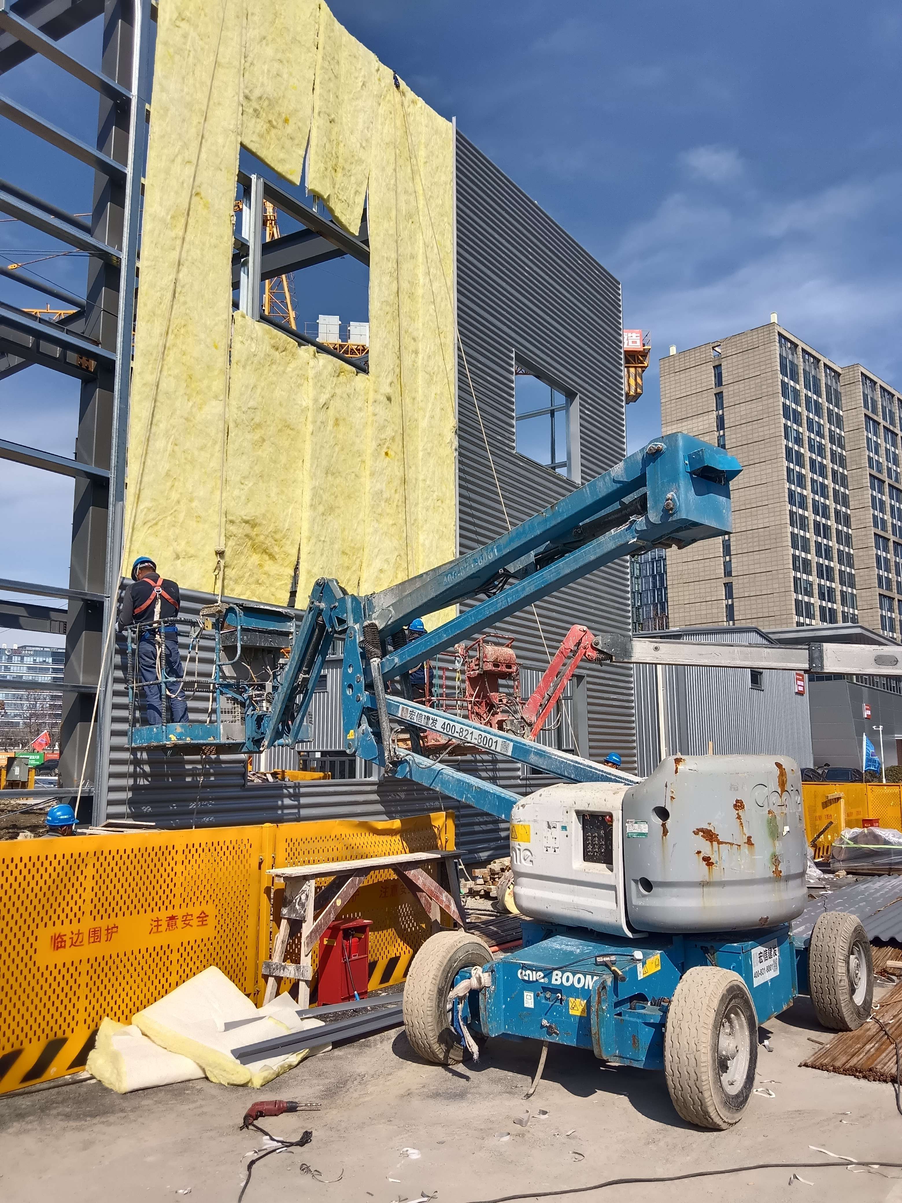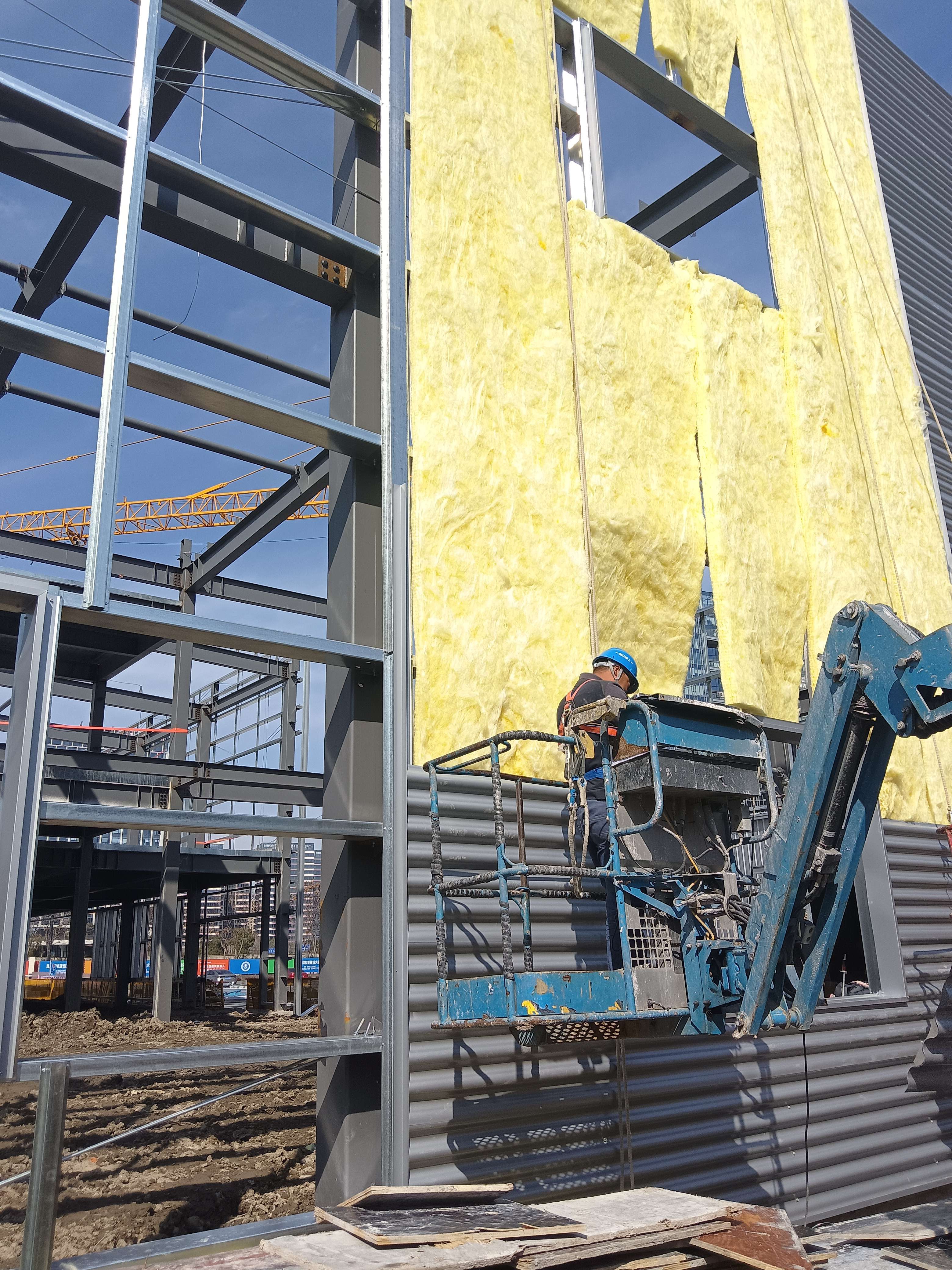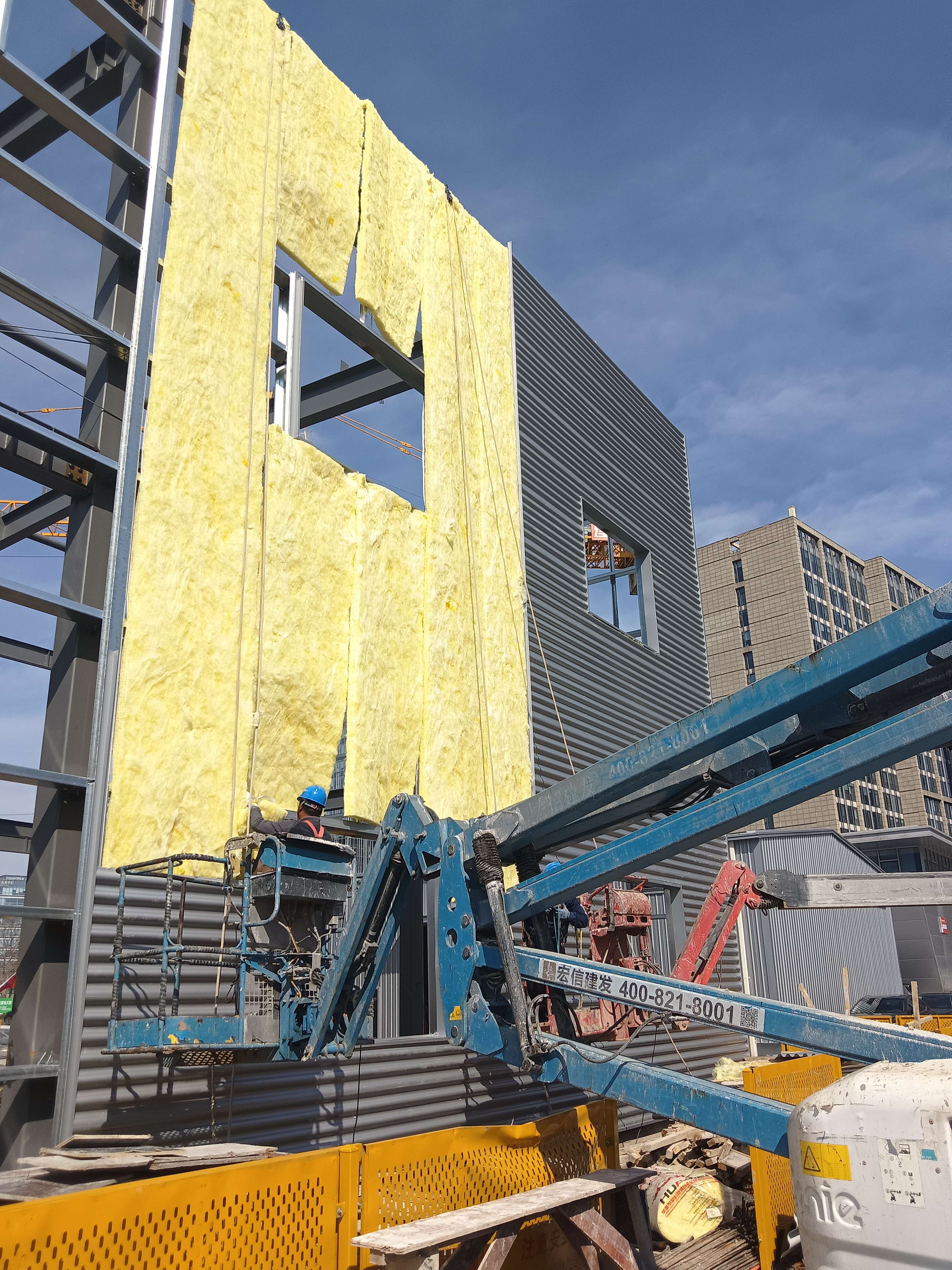 钢构外墙波型板及岩棉保温板施工