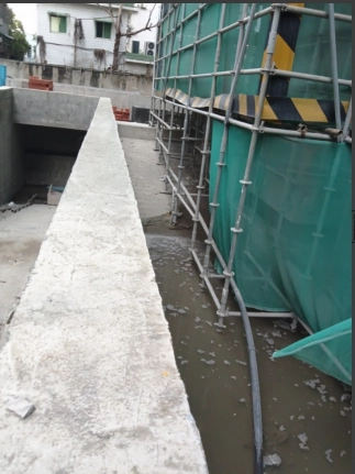地下室自行车坡道的与主楼相接的位置、地下室坡道注意踏步是二次施工的、内部汽车坡道的挡墙的起步抹灰和涂料界限的问题