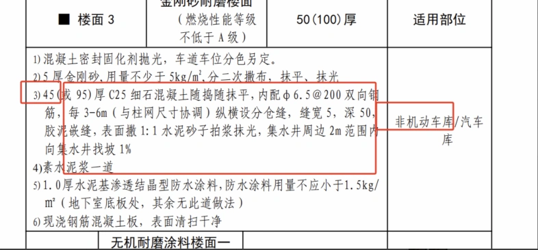 地下室地坪做法--混凝土地坪+钢网片+耐磨骨料+固化剂-图纸做法描述