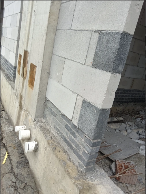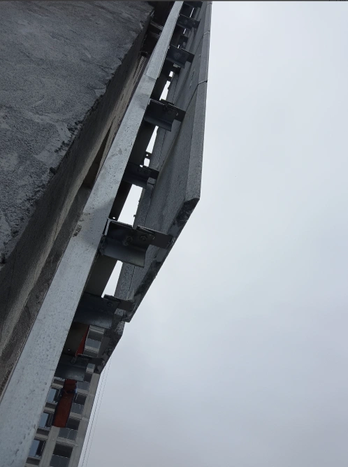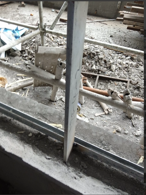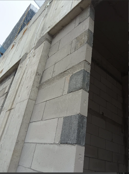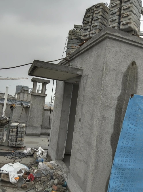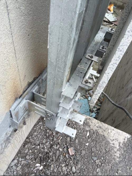 电梯井的隔音墙--注意有悬空梁,有点防锈漆的工艺