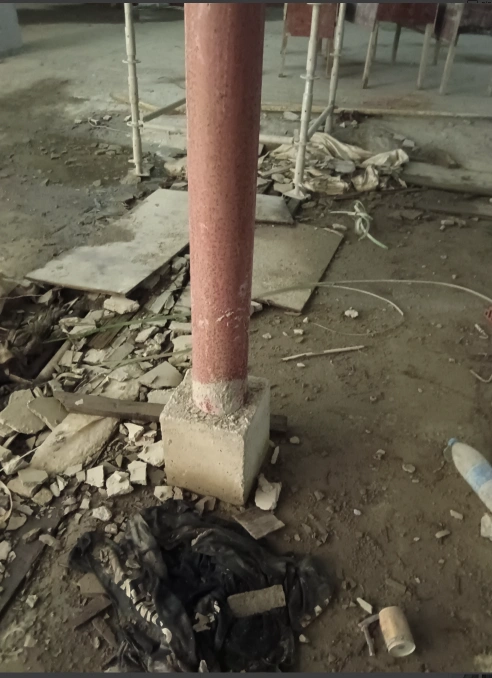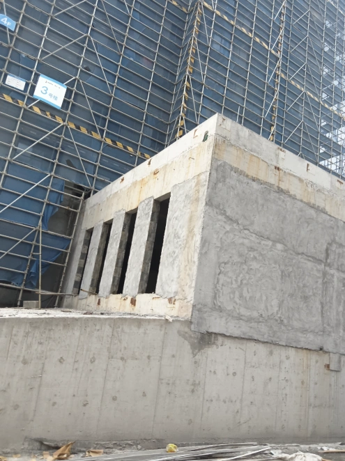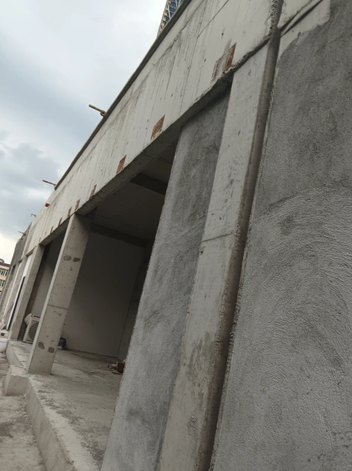 附属商铺、汽车坡道顶面注意只有砖墙面抹灰、梁面柱面砼墙没有抹灰