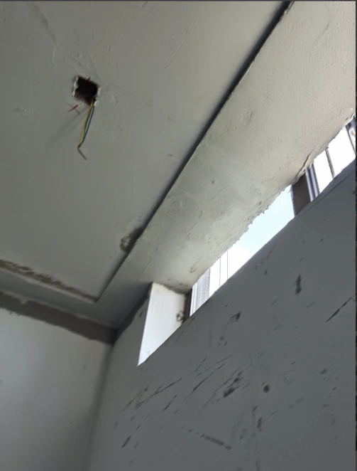 顶棚热桥部位的完工照片、暂时没有刮腻子,注意楼梯间位置的热桥