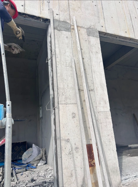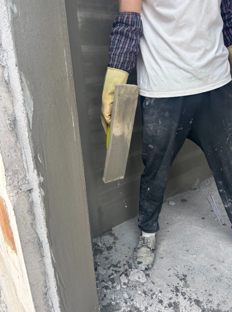 沿街商铺:细沙横向拉毛 15 厚 M5 混合砂浆分遍抹平